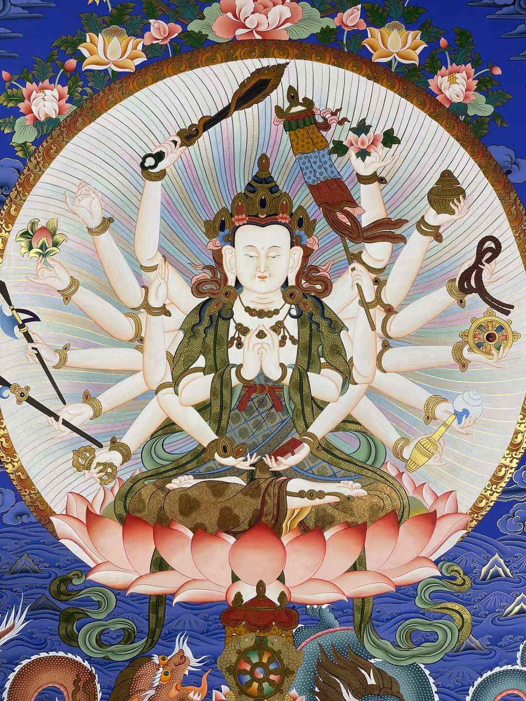 宗教功用:密宗重要本尊象征,用于降伏龙病、消除障碍、护持国运;唐卡、法器、护身符常见其形象,寓意尊胜、护身、辟邪。