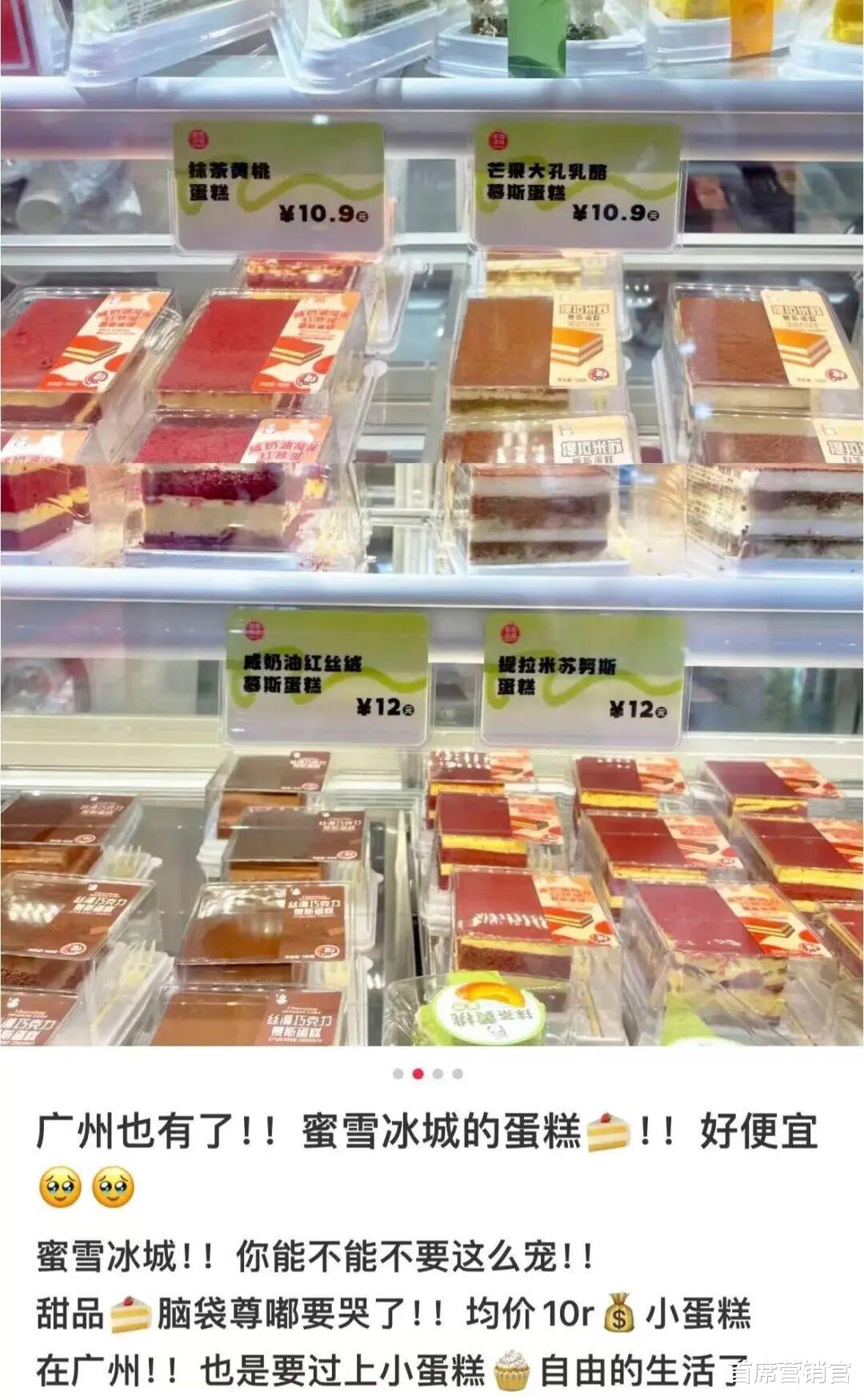 最近,有广东网友发现,蜜雪冰城开始卖蛋糕了!