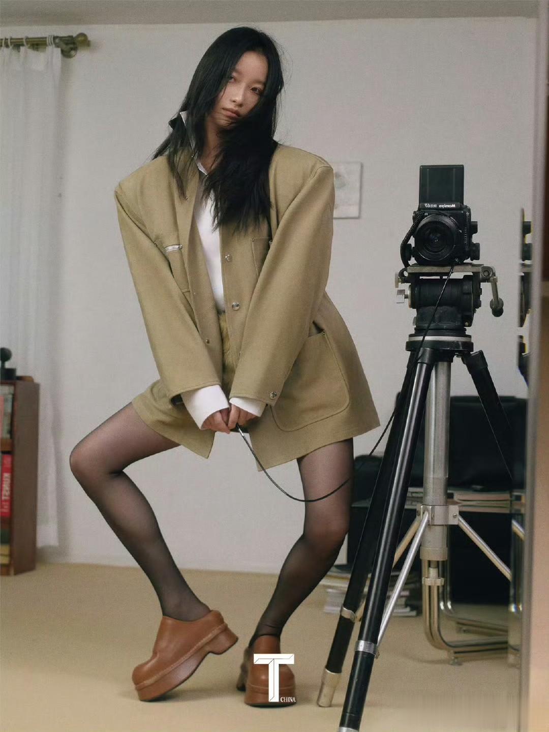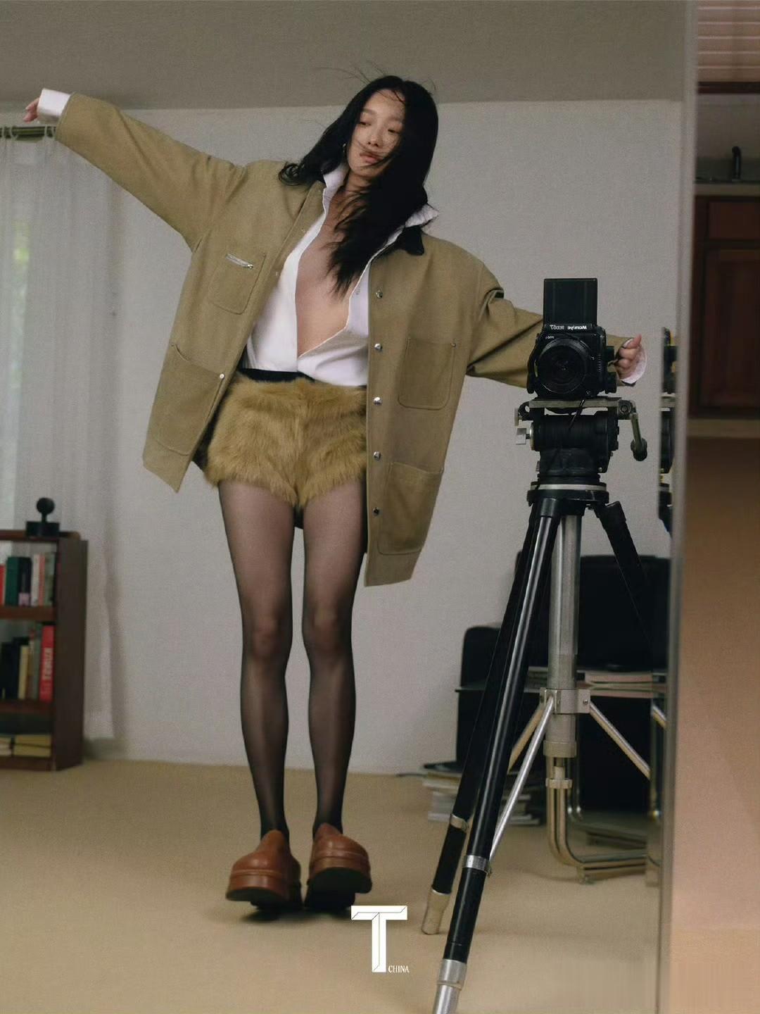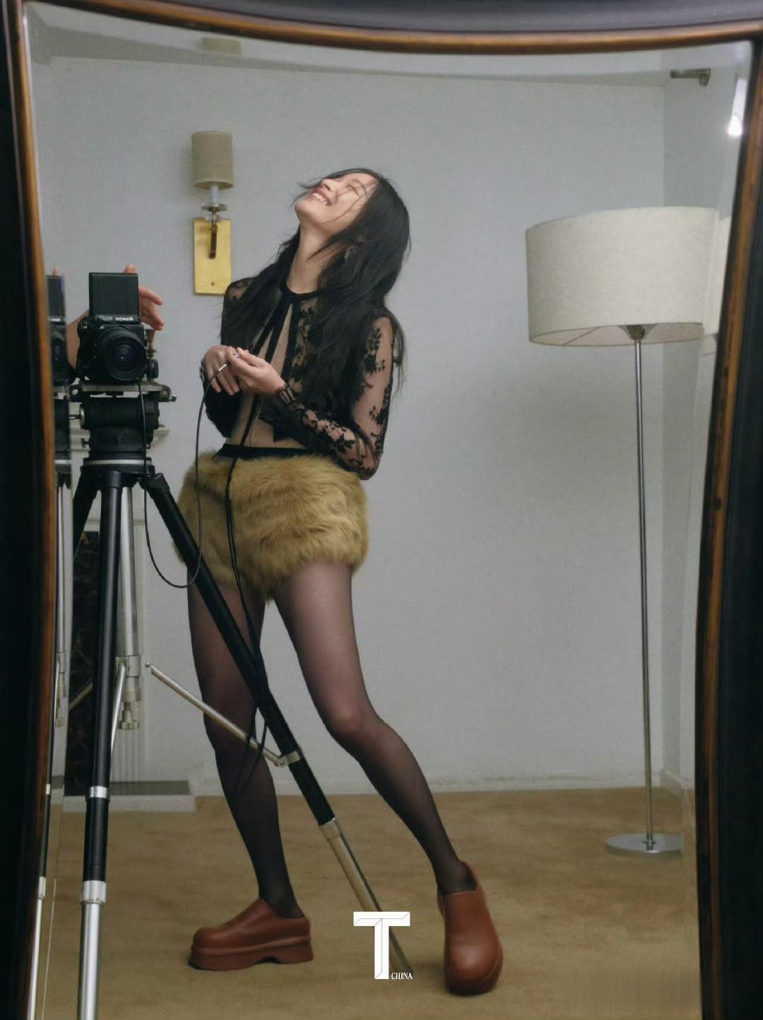 正式封面上,利落短发、类似素颜的妆容,俯身时曲线、锁骨超迷人。内页更是风格多变,皮草配薄纱裙、红色亮片吊带裙等都驾驭得很好。她自己把控快门拍的大片也超绝,粉色连身裙内搭蕾丝胸衣,高开叉尽显风情;白色上装配皮草短裤,美腿吸睛。倪妮这时尚表现力,真不愧是硬照女王!