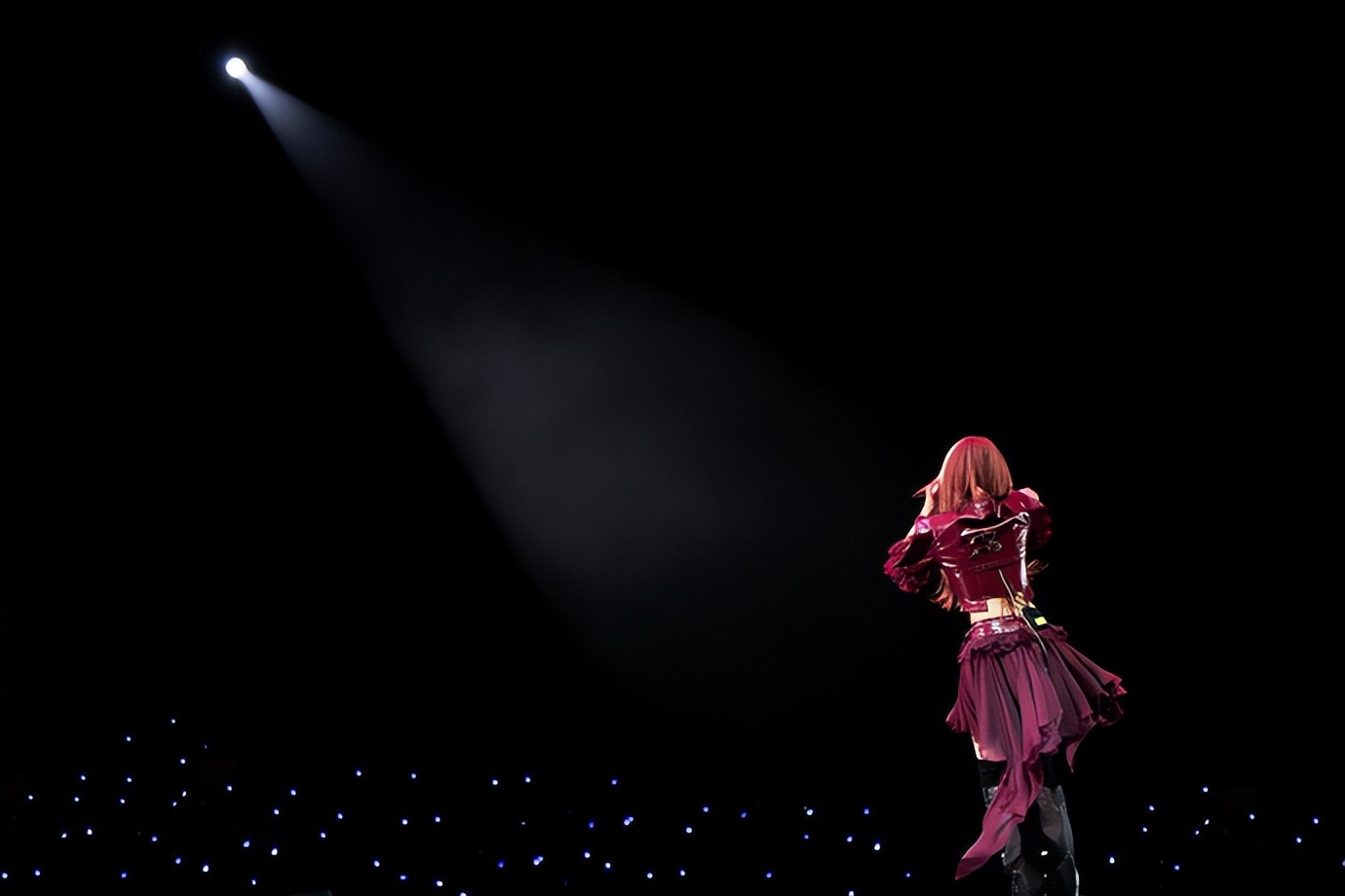 聚光灯裹着她的侧影,舞台暗场里只剩这束光跟着她的动作移动,她抬臂的线条在光里拉得利落。她控场的习惯是 “让灯光跟着动作走”,比如唱到高潮时,抬臂的瞬间光会刚好打亮全身。这次成都站的暗场设计,把她的动作衬得更有张力,连影子落在舞台上的轮廓,都带着唱跳的劲儿。