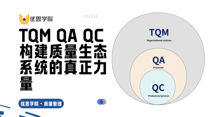 一、QC、QA 与 TQM 并非替代关系,而是成熟度关系许多企业误以为:做好 QC 就不用 QA,或做好 QA 就不需要 TQM。这是一种常见迷思,也是优思学院在质量培训中屡次提到的组织误区。事实上,三者之间不是“谁取代谁”的关系,而是“谁支持谁”的关系。QC 是基础,QA 建构系统,TQM 建立文化。企业不可能跳过 QC 直接进入 QA,也不可能绕过 QA 推行 TQM。