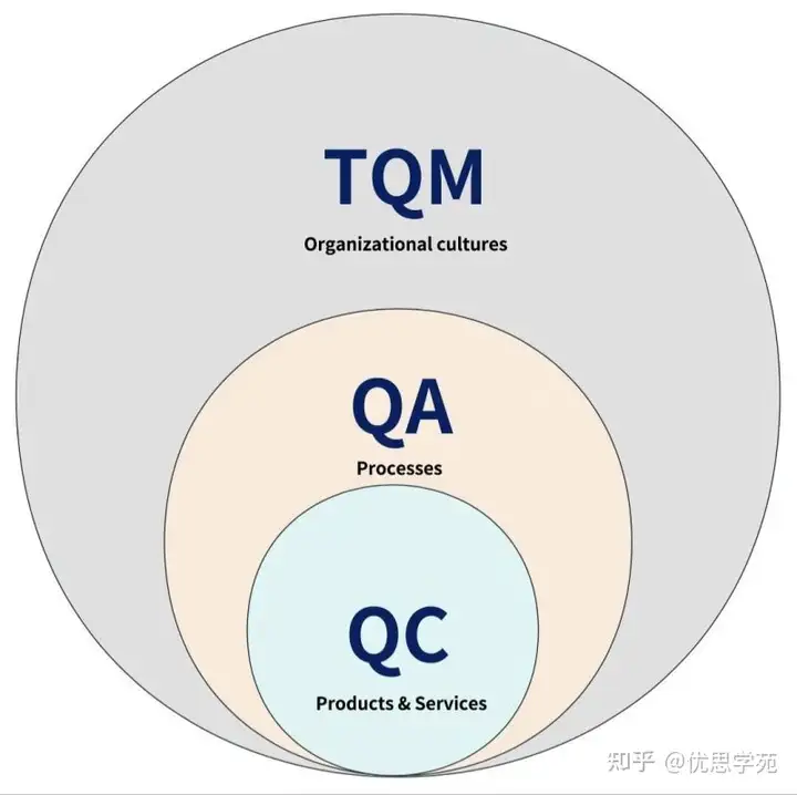 这一层层递进的关系,使得质量不仅是一组方法或工具,而是组织能力的体现。越成熟的组织,越强调 QA;越卓越的组织,越强调 TQM;而越不成熟的组织,越依赖 QC,因为他们只能依靠检验来补救流程缺陷。