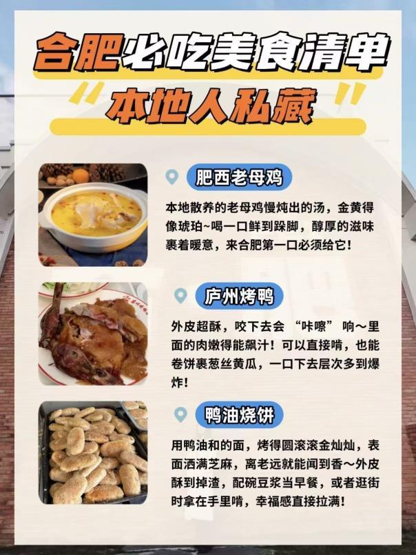 色泽金黄的肥西老母鸡汤、外酥里嫩的庐州烤鸭、洒满芝麻的鸭油烧饼……热气、酥香、油香一起上桌,就是合肥最有存在感的那股子“锅气”!