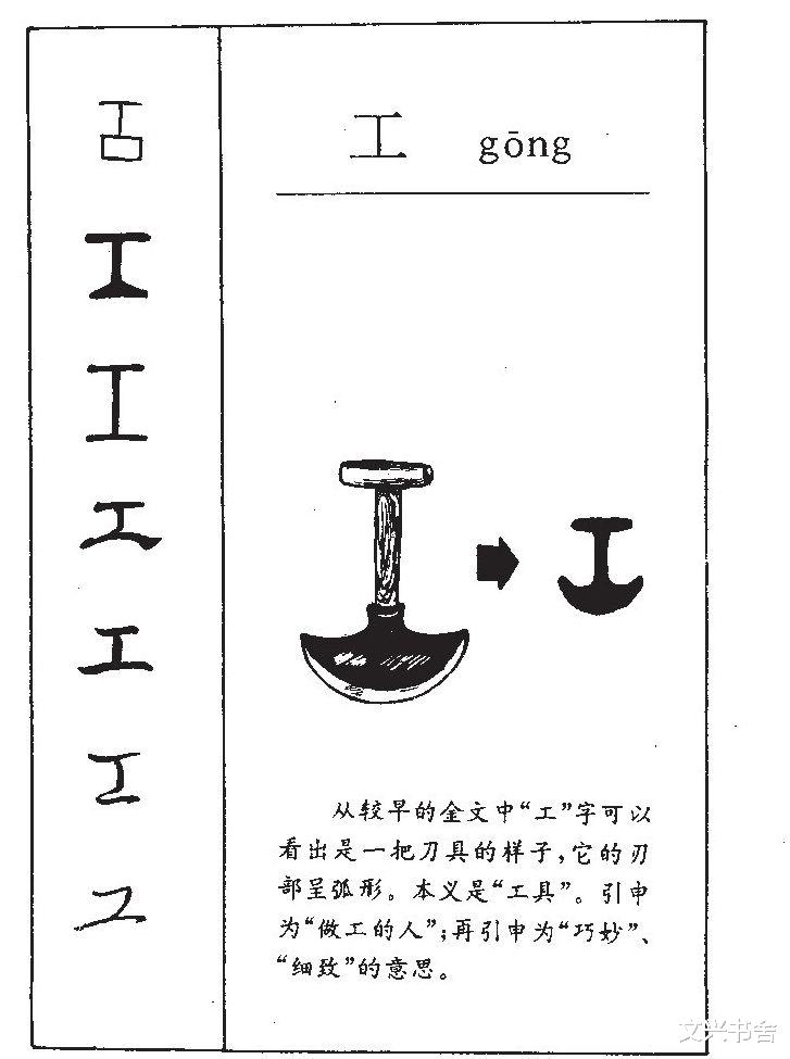 这种方方正正的笔画,既贴合工具的规整形态,又呼应 “工” 的核心内涵 —— 工匠劳作需遵循 “规矩”,“工” 与 “巨(矩)” 古同字,本身就有 “规矩、法度” 的含义,方正的笔画恰好象征着工匠劳作的严谨、规范,也契合汉字演变中 “从具象描摹到规整符号” 的趋势,同时呼应了 “工欲善其事,必先利其器” 中工匠的严谨特质。