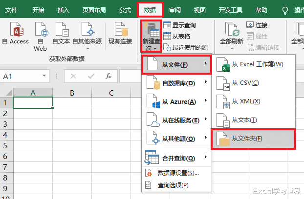 1. 选择任务栏的“数据”-->“新建查询”-->“从文件”-->“从文件夹”