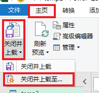 11. 选择任务栏的“主页”-->“关闭并上载”-->“关闭并上载至”