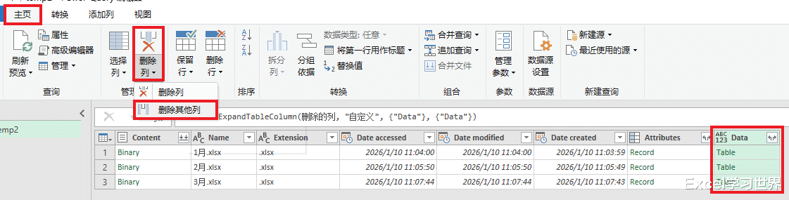 7. 仅保留 Data 列,删除其他所有列。