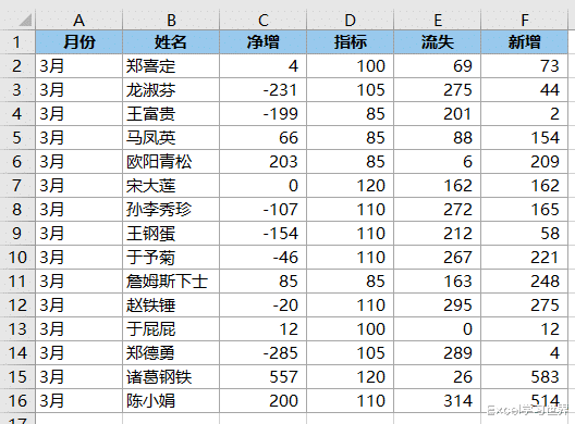 下图 1 至 3 的数据表分别在三个不同的工作簿中,请将它们合并后统计每个人的总“净增”值。