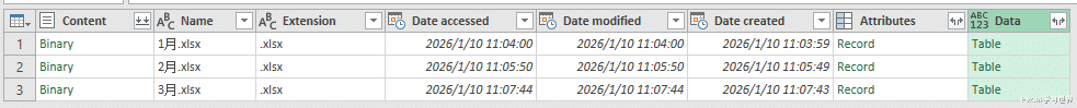 将多个工作簿中的数据表汇总,可以用 PQ 实现。如果各个数据表的列顺序不一致,有些版本的 PQ 可以自动调整,有些则不行。