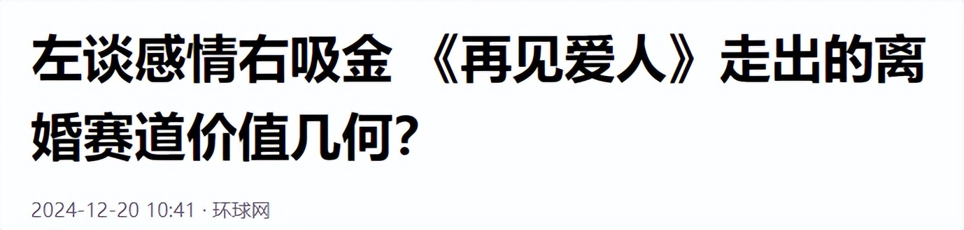 2.《左谈感情右吸金 《再见爱人》走出的离婚赛道价值几何?》环球网 2024-12-20