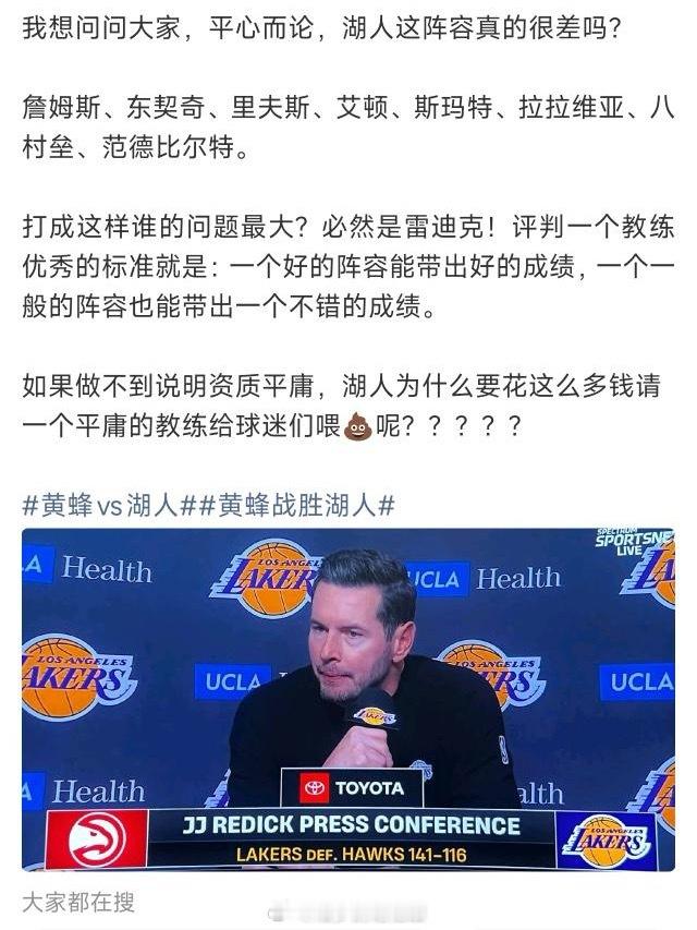 提醒一下,这是詹姆斯复出之前的湖人。我湖差点也是好起来了,罚老詹在湖人再打10年