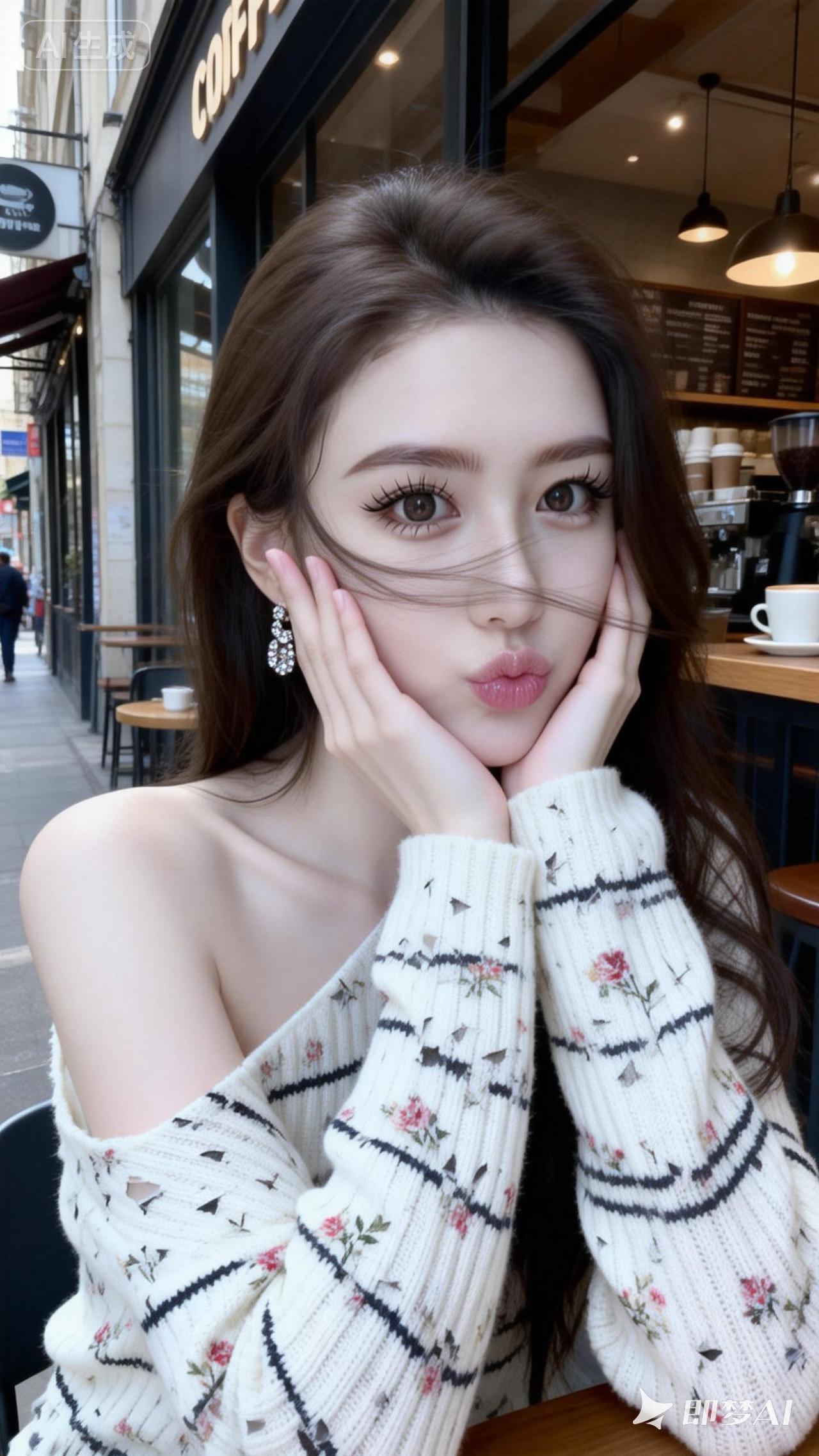 一位25岁绝世美女,棕色自然长发,高颅顶,戴着精致的耳饰和项链,脚上穿一双3厘米