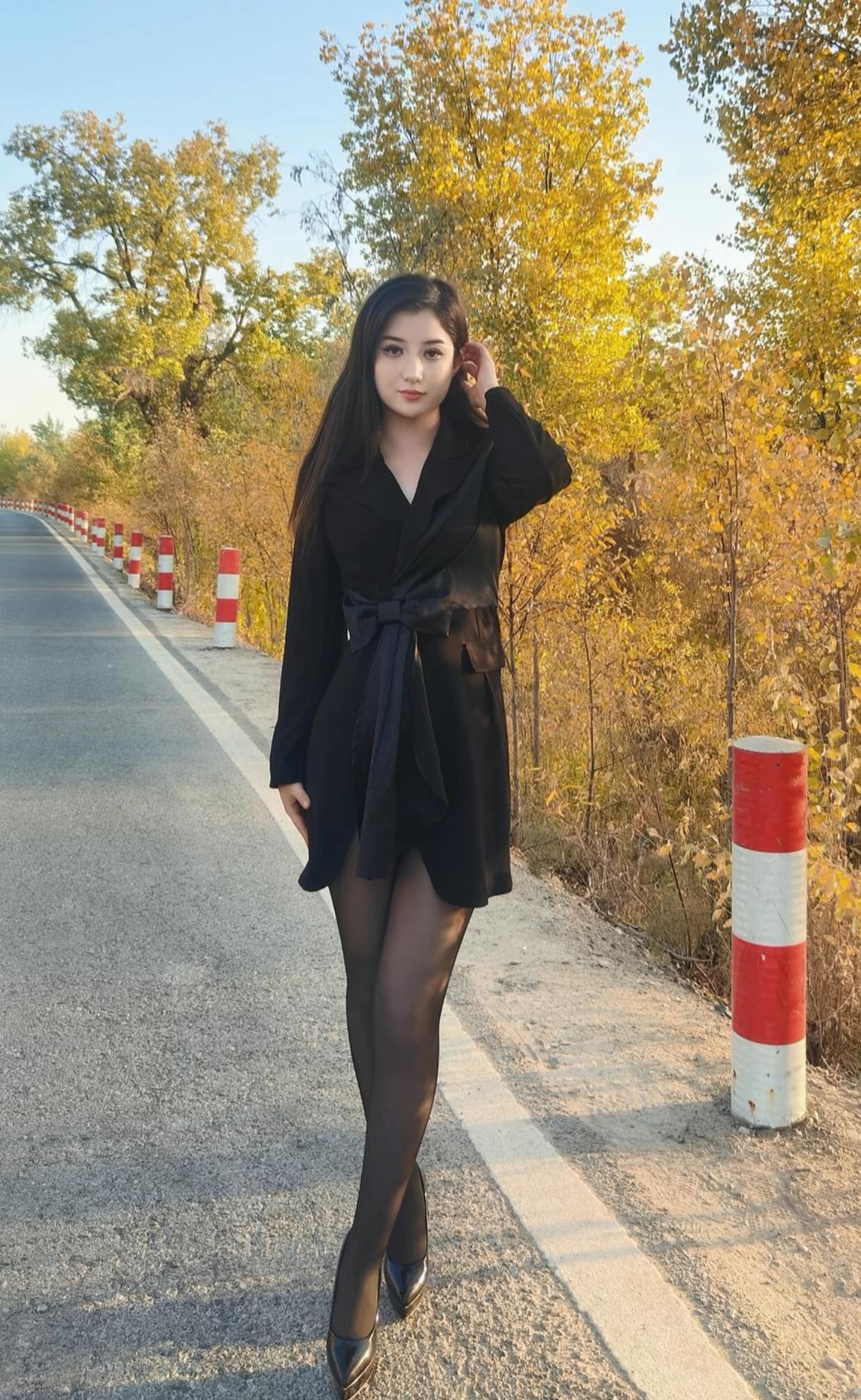夜晚穿搭指南:黑色皮草外套+紧身裙,时尚又保暖。